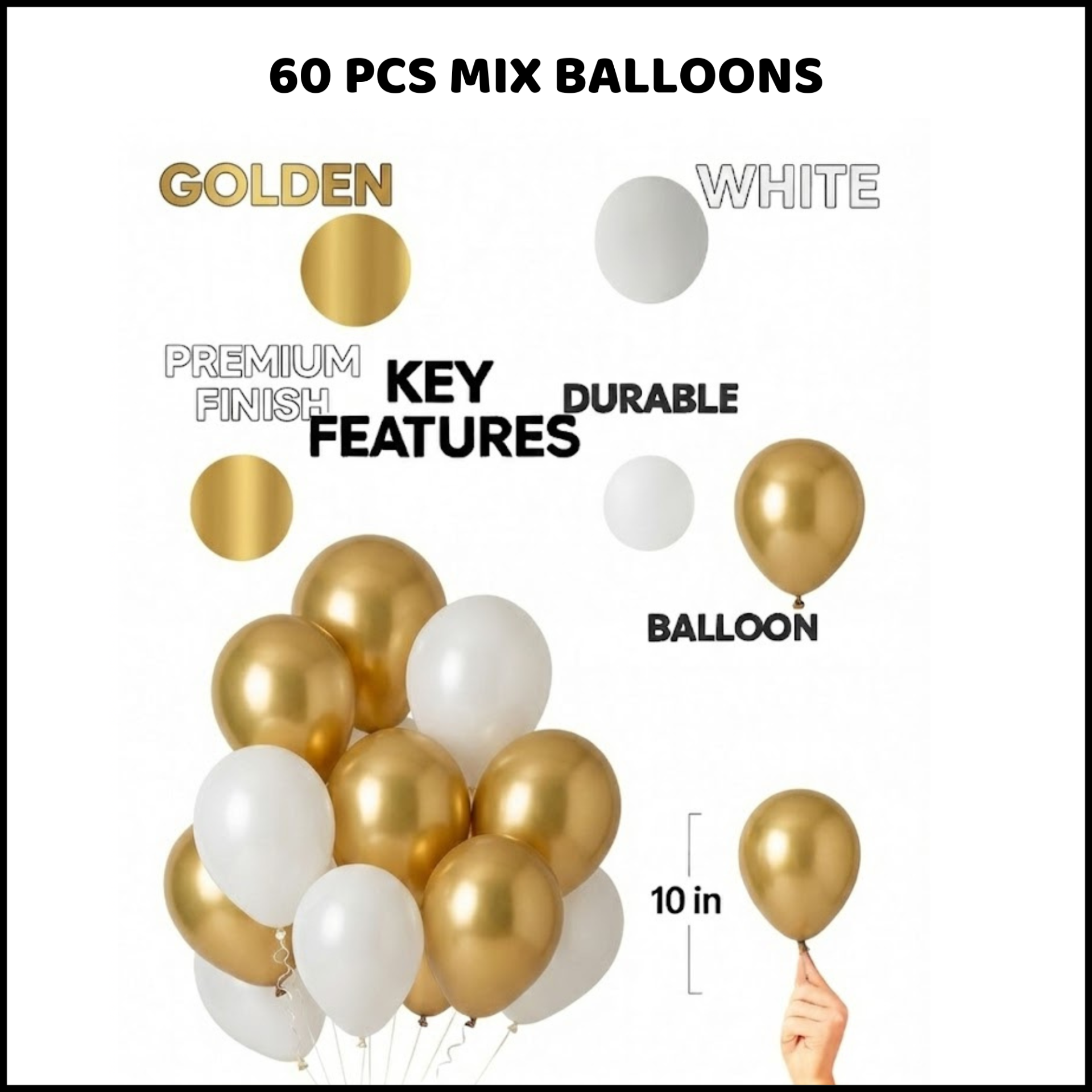 2. 60 PCS Mix Balloons (White & Gold)