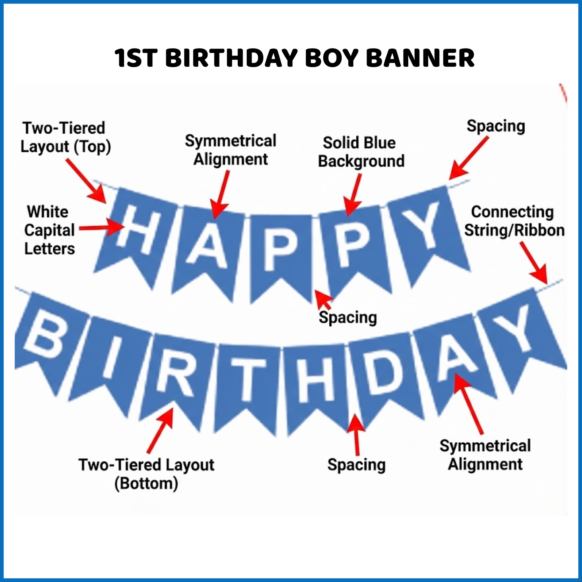 • All-in-one decoration set for quick DIY setup • Theme décor: Blue 1st for a photo-ready birthday setup • Color theme: Blue, Gold, White, Navy • Includes: Glue dots, Happy Birthday banner, Star foil balloons, Foil balloons • Best for: Hall, Terrace, Photo backdrop, Home • Easy to install at home and creates a premium party look in minutes